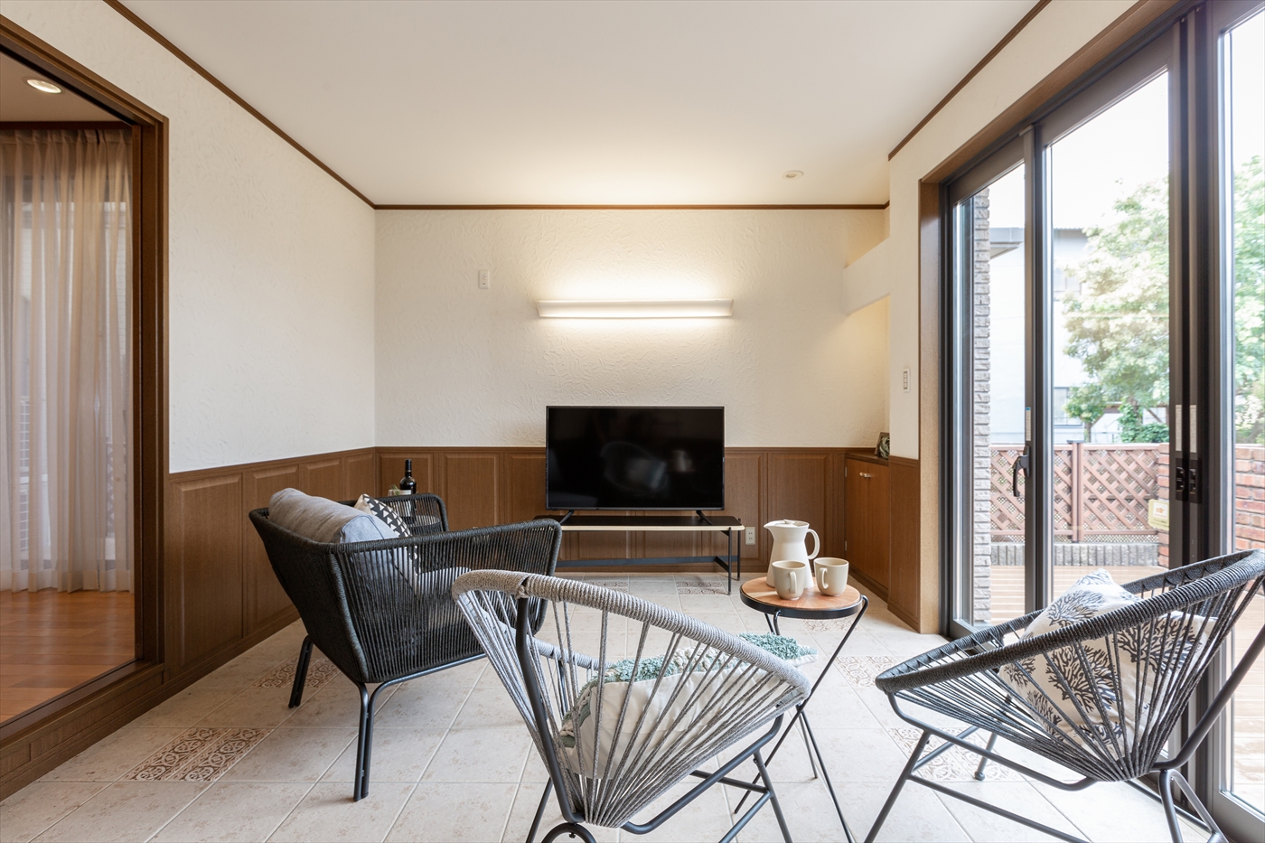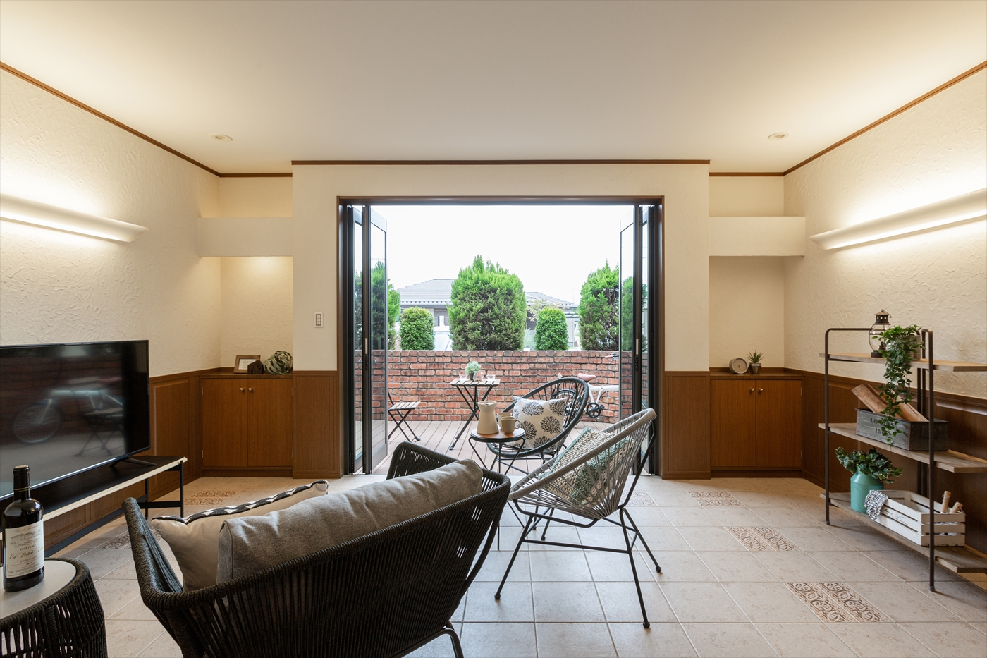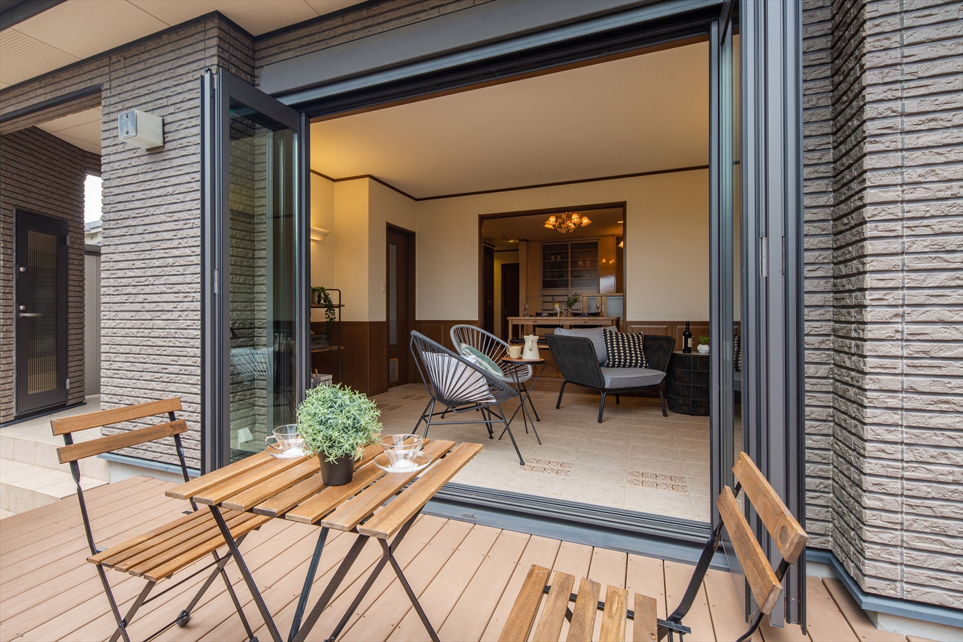 ベスト1.ウッドデッキとつながるワイドオープンの全開口窓