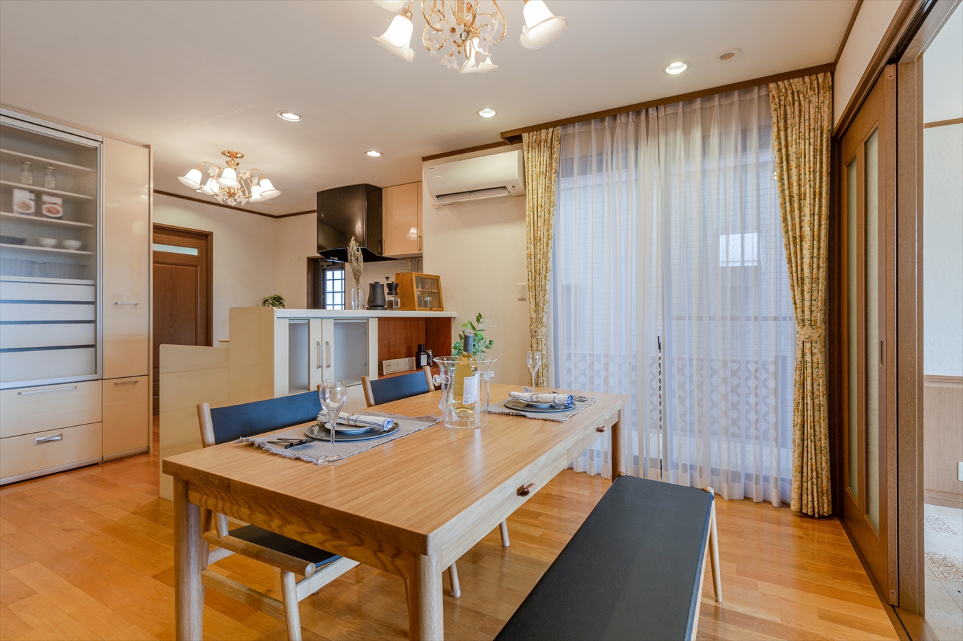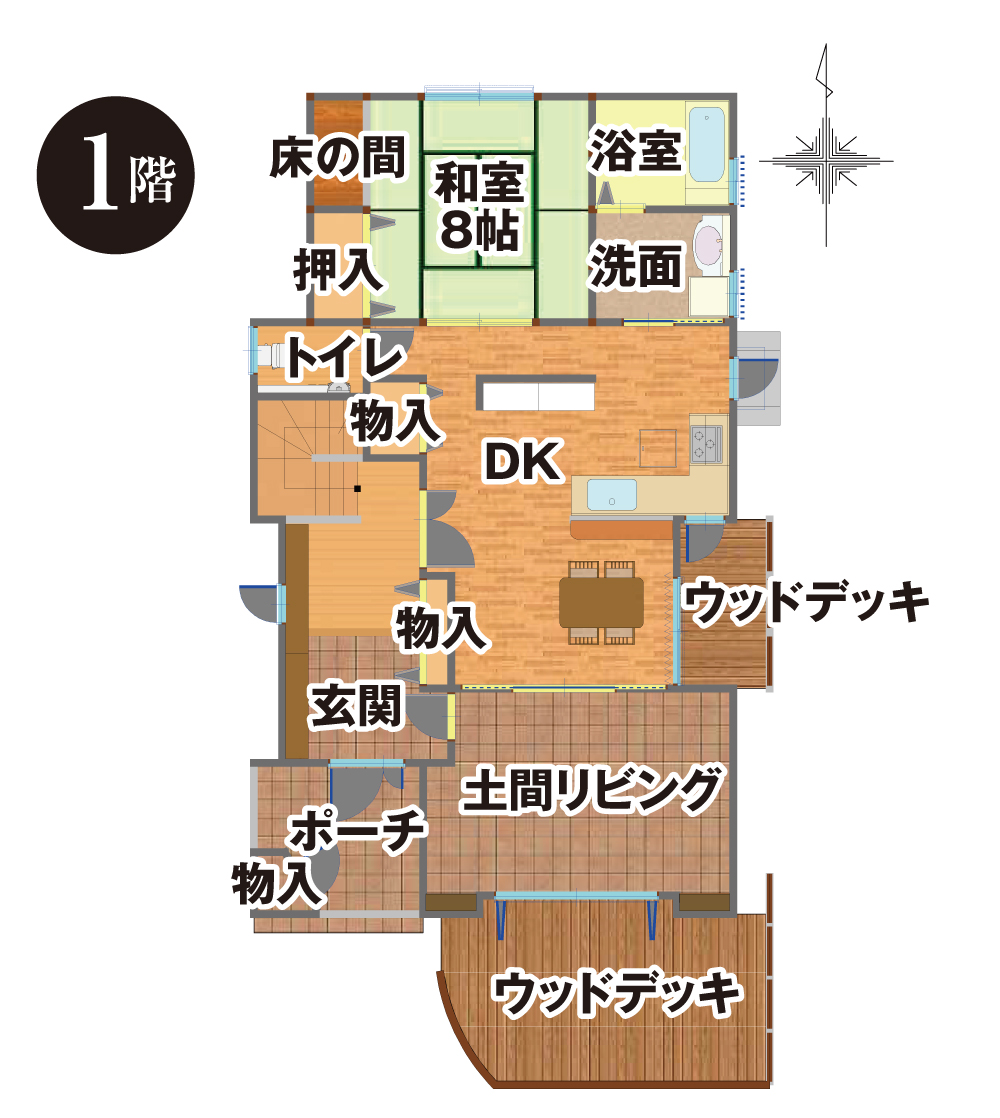 家族とのコミュニケーションがとりやすく、ウッドデッキまで視界が広がっています。