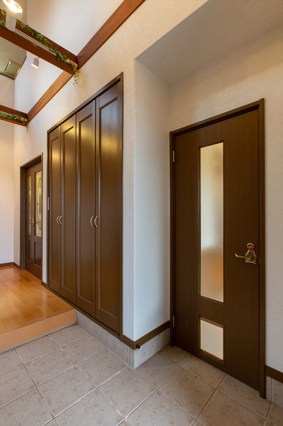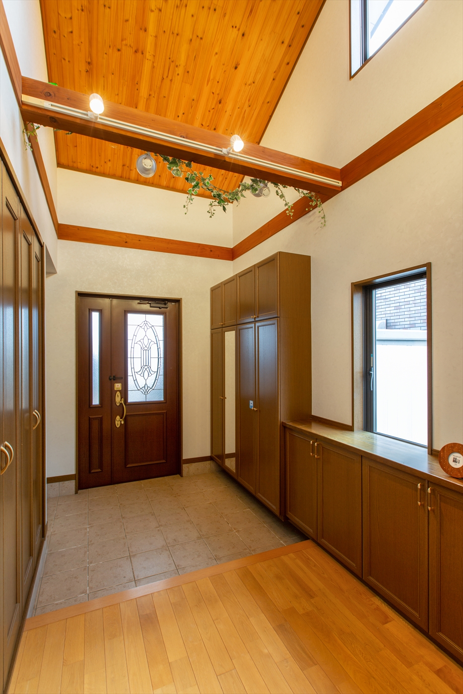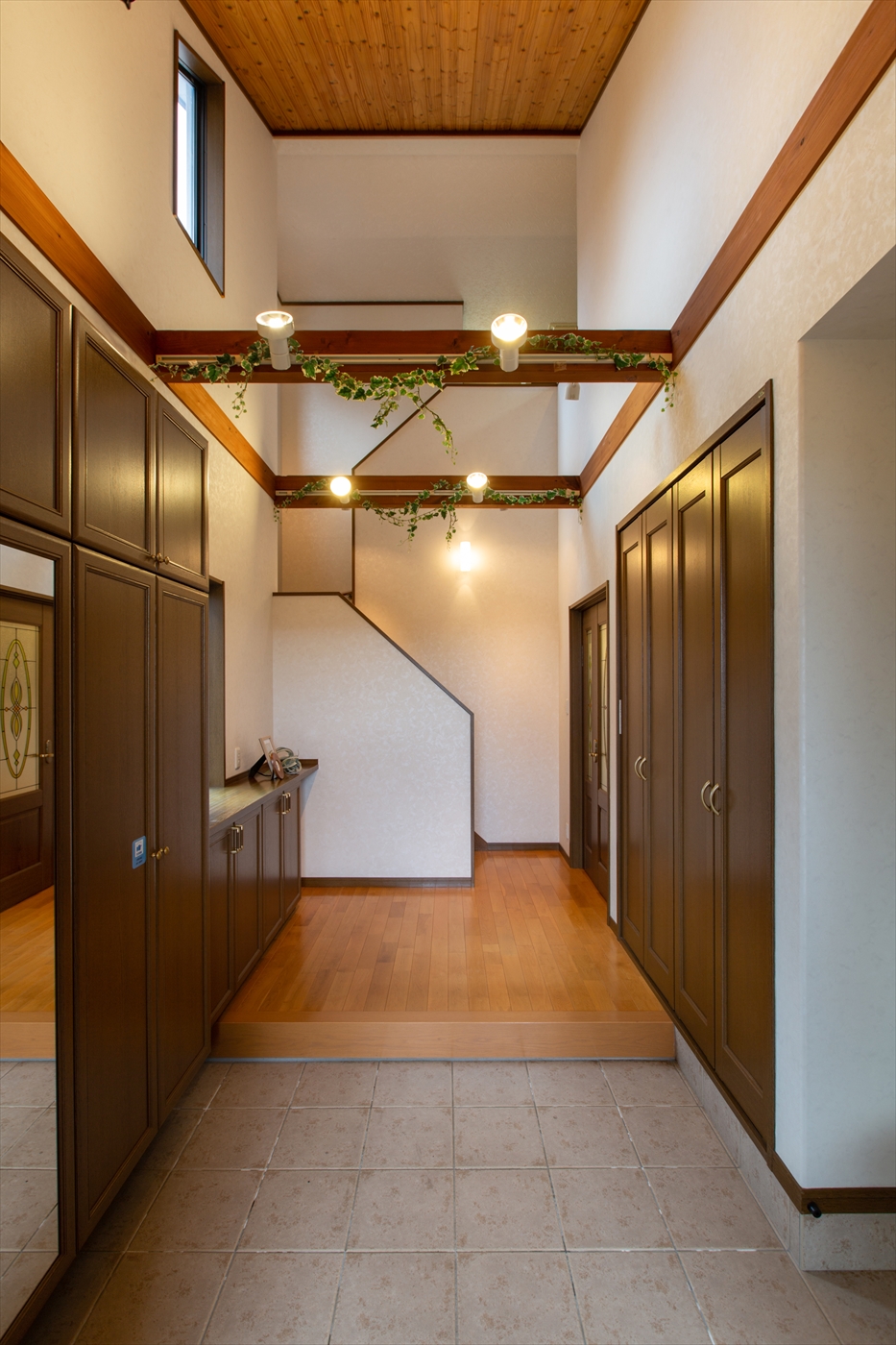 開放感のある玄関の吹き抜けから、明るい日差しが差し込みます。