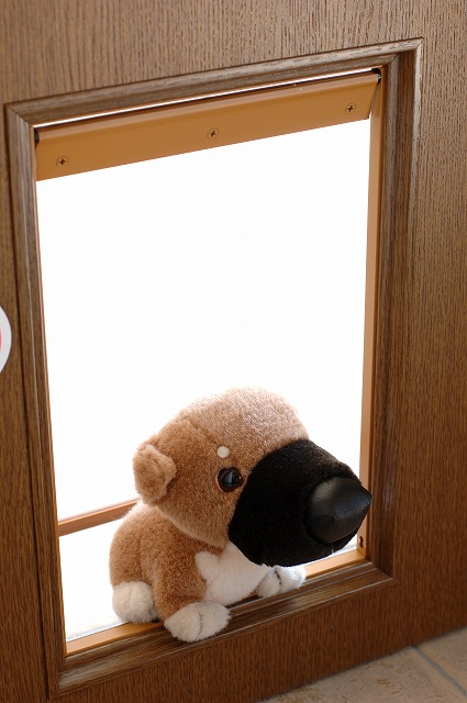 扉に、小型犬サイズの小さな出入口を付けて、行動範囲を広げることもできます。
