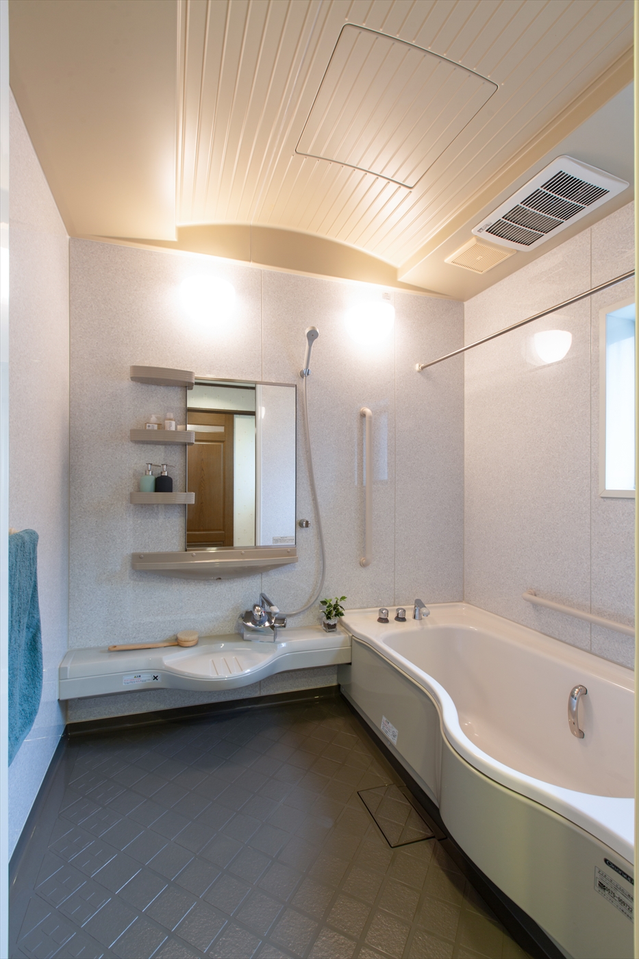 広めの浴槽と洗い場で、小さいお子様と一緒に家族でゆったりと使えます。