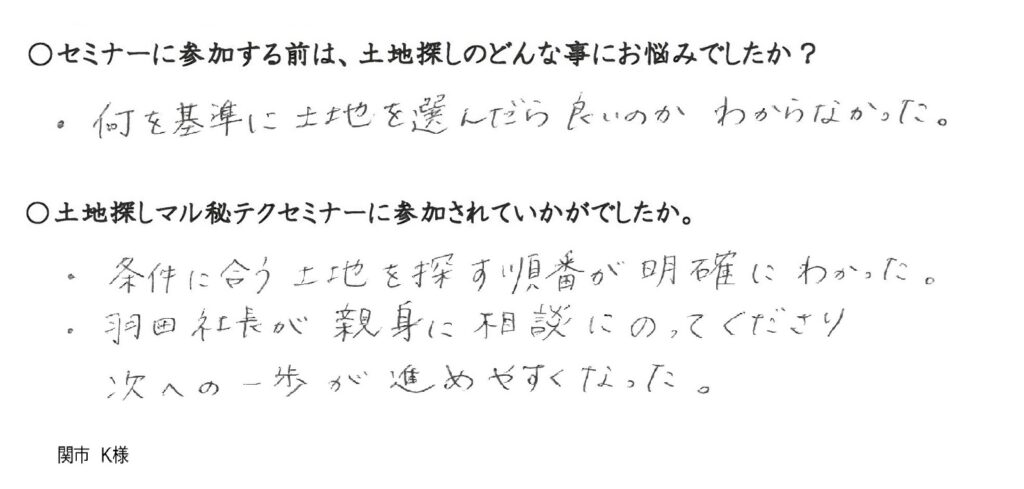 土地に関する無料セミナー ご参加者の声
