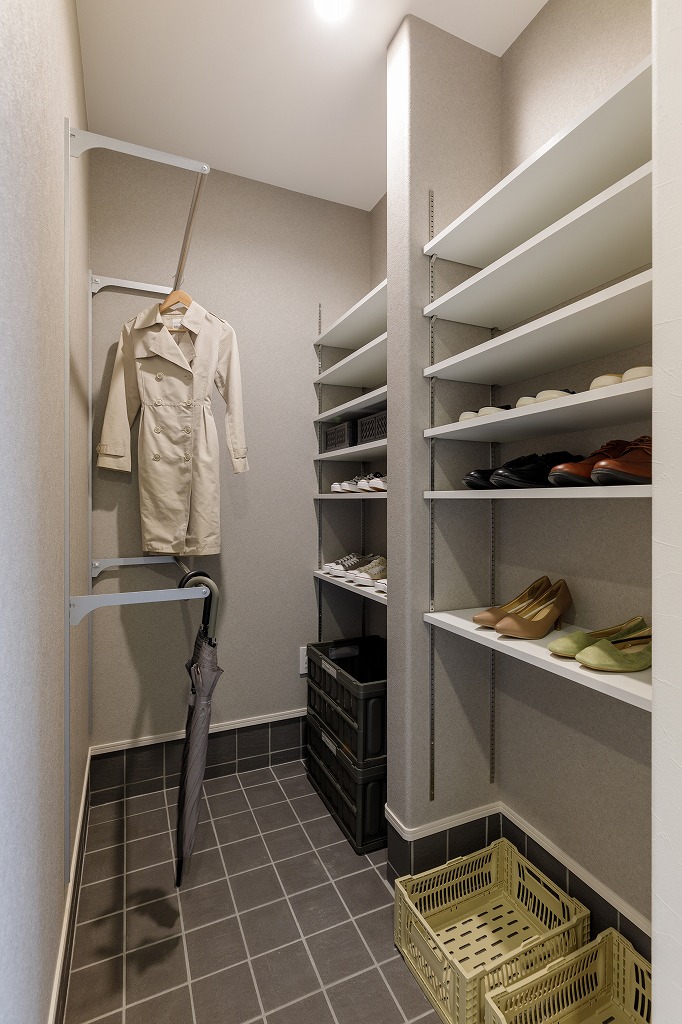 土間収納へボールも長靴もそのまま放り込めるから、室内に砂粒ひとつ持ち込ませない土間収納。