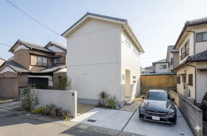各務原市 K様邸白さ際立つ、多箇所収納、家事らく動線の家