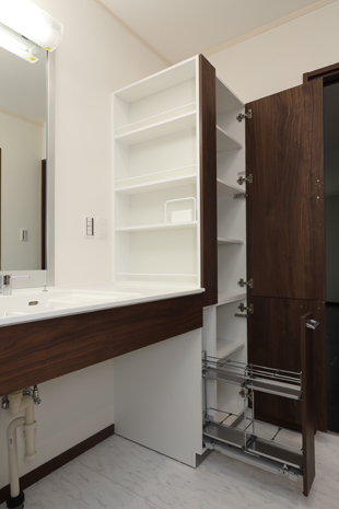 洗面室と脱衣・洗濯室は分離し、洗面室は広さ2.5帖と広めに取りました。